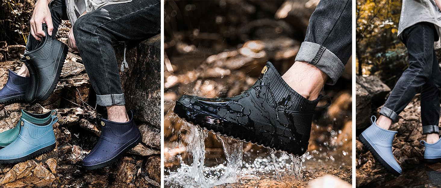 Rojeam Mens Rain Boots Waterproof Chelsea Booties Outdoor Gardening Shoes Ankle Wellies